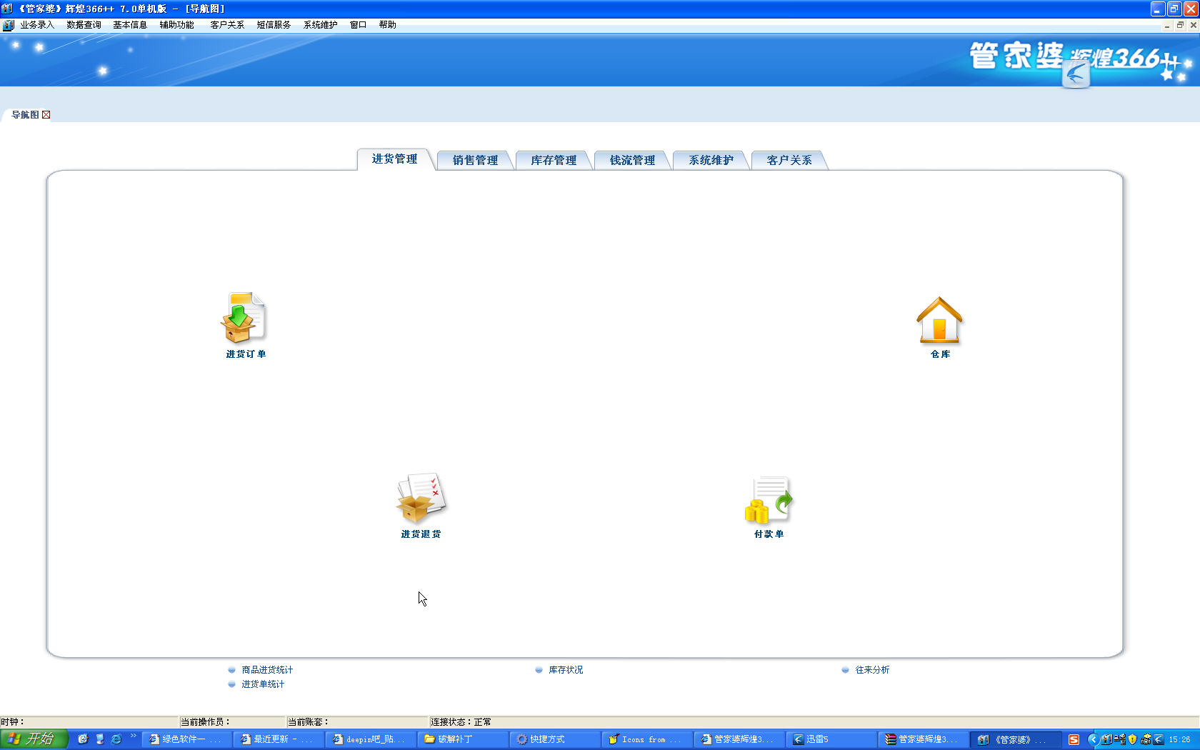 2 进货报告:进货单查询、进货统计报告、供应商账务