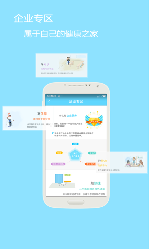 线上线下一站式服务,让健康更简单!专家团队实时在线,医护客户便捷沟通;