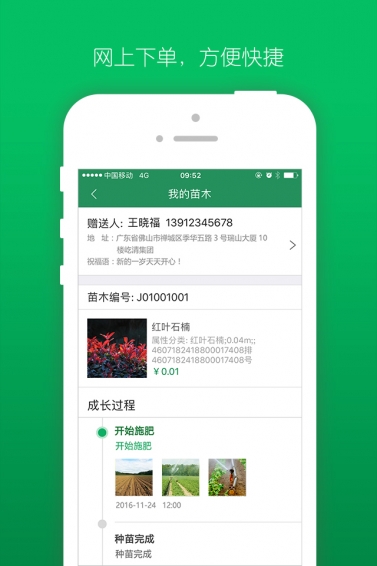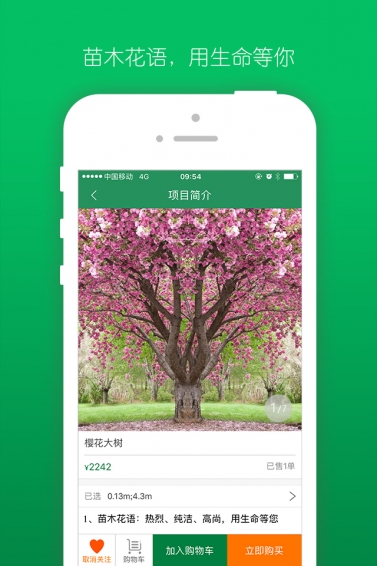 “遇树林丰”是广东屹清集团股份有限公司推出的一款具有特色化的树苗养护互联网服务项目,安徽木一基地作为其中一个商家,提供了各类观赏树种,客户通过网络购买树苗,并支付较少种植成本且不需要亲自栽种,苗木基地为客户提供专人栽种和养护服务。用户种下一棵树,以树寄情,用树表达情怀,让人的情感得到宣泄与寄托。日后将会上线更多苗木基地。【软件特色】