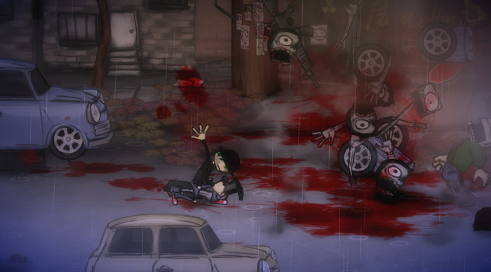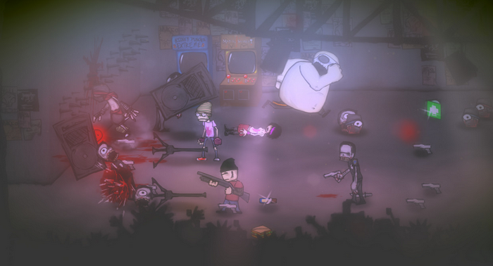 如同玩家所熟悉的2D横向动作游戏,关卡中会有许多物件让玩家使用,而在《查理谋杀者》里面这些物件除了武器、道具以外,玩家还可以把僵尸尸体、手臂、头脑拿起来当武器,同样地也可以利用武器进行连段。