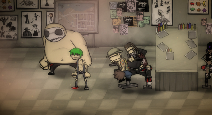 《查理谋杀者》在画面表现上就是有着与众不同的风格,阴暗色系的背景中显得人物物品的色系非常明亮,红色鲜血则像是战场上的玫瑰般与之形成一种强烈对比,如此冲突的视觉效果营造出来的气氛并不会感到难受,反而有另一种在异世界的氛围,在人物的刻画上就是游戏公司自家的水墨式画风为招牌。