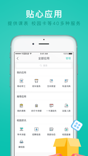 【功能丰富实用】 多种实用校内应用,涵盖学工应用、教务信息、生活服务、学习工具等方面