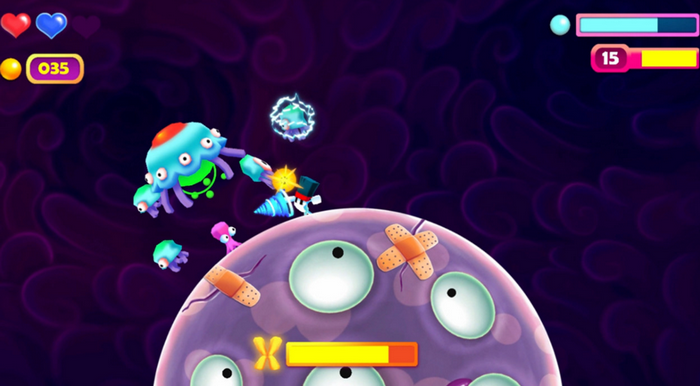 目标是摧毁你行走的大球体。但你不能如此轻易地伤害它!在对它的表面造成足够的伤害后,你进入母体微生物,在那里你将不得不在终极摊牌中摧毁它的核心!