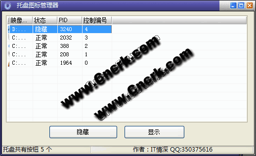 小巧绿色。安全,不带任何三方垃圾,托盘图标管理器可以任意显示隐藏系统托盘的图标 此工具可以解决某些软件不能隐藏托盘图标的情况下悄悄在后台运行
