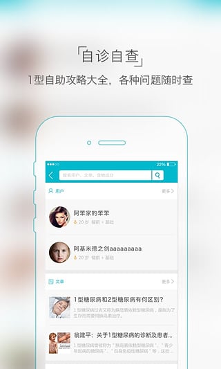 自查自诊----甜蜜一生由自己,1型自助攻略大全,糖尿病常识、糖糖饮食、专业词汇,权威知识库随时查。