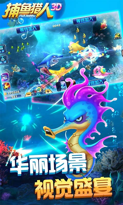 捕鱼猎人是一款捕鱼类型的休闲娱乐游戏,画面丰富多彩,游戏中可了解各种深海鱼种,操作简单,容易上手,娱乐性强,捕鱼玩法丰富。捕鱼猎人是百纳信息16年重金打造的休闲娱乐3D捕鱼游戏,游戏中所有的鱼类都为3D建模,鱼种丰富多样,独特的海底世界等着你,拿上你的渔网,向深海出发吧!
