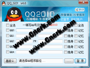 QQ多账号一键登录工具 V4.6 简体中文绿色免费版 适合拥有多个QQ账户并且像本人一样懒得一个一个去登陆的朋友(最大限度解放双手),软件无毒、无后门、无任何插件,请心存疑虑的朋友自行查检