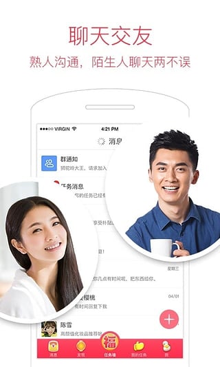 双方通过“发布任务”—“执行任务”的互助模式建立联系,打造价值社交,展现个人魅力,赚钱交友两不误。