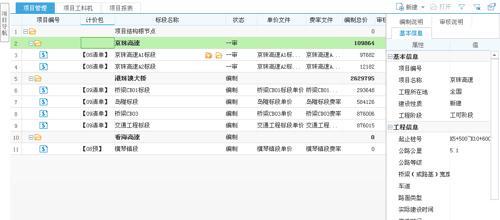 同一建设项目可以任意分解不同层次的子项目,各子项目可以兼顾公路、房建、通信等多专业的计价依据,同时按项目分解层次进行费用汇总,输出项目的汇总报表。