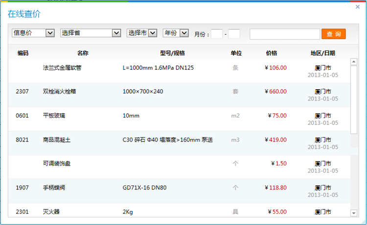 同望wecost v9在线查价、批量刷价功能,可查询超过2000万条的全国公路工程、市政公用工程、建筑工程的建材产品信息、价格信息、供应商信息,一方面及时获得政府信息服务,另一方面能获得市场化的信息服务,帮助您提高编制效率和提升造价准确性。