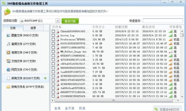 实测360“勒索病毒文件恢复工具2.0”,文件恢复效果极佳,大量重要文件能够成功恢复。