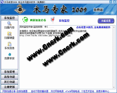 木马专家2008是一款木马查杀软件,软件除采用传统病毒库查杀木马以外,还能智能查杀未知木马,自动监控内存非法程序,实时查杀内存和硬盘木马。第二代查杀内核,支持脱壳分析木马.软件本身还集成了网络入侵拦截,IE修复,恶意网站拦截,系统文件修复,注册表备份和供高级用户使用的系统进程管理和启动项目管理等。有效查杀各种流行QQ盗号木马,网游盗号木马,冲击波,灰鸽子,黑客后门等十多万种木马间谍程序