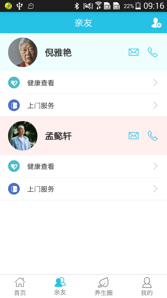 当前版本为3.0,里面有首页,亲友,养生圈,等,可查看健康,等,添加好人亲友。添加提醒,查看老人详情,预约服务。