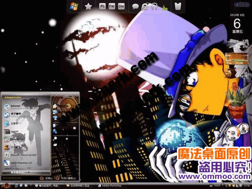 怪盗基德,充满传奇色彩的盗贼,喜欢在晚上作案,身着白色礼服,戴着特制的单片眼镜。魔法桌面原创名侦探柯南之怪盗基德主题,把怪盗的风范展现的淋漓尽致。