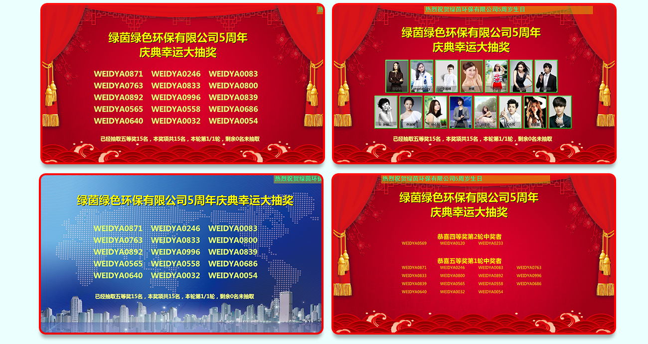 自由设置标题、副标题、LOGO及抽奖嘉宾、中奖展示以及显示/隐藏组件等等;