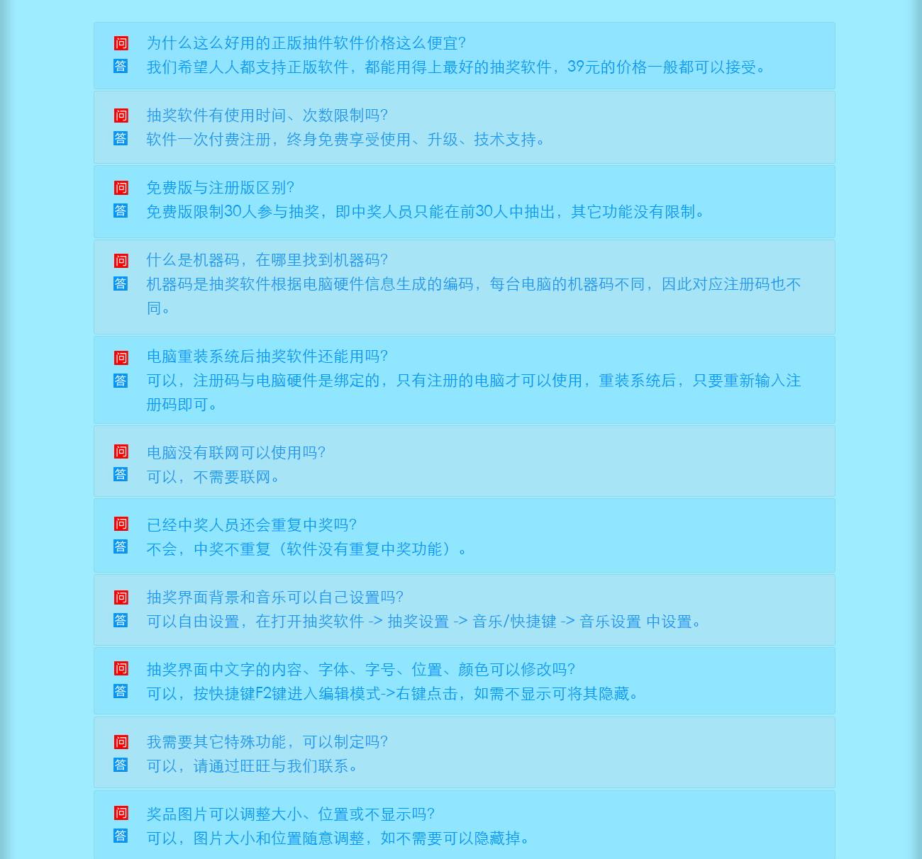 背景音乐: 自定义背景音乐、抽奖音乐、中奖音乐、颁奖音乐(可按快捷键播放颁奖音乐)