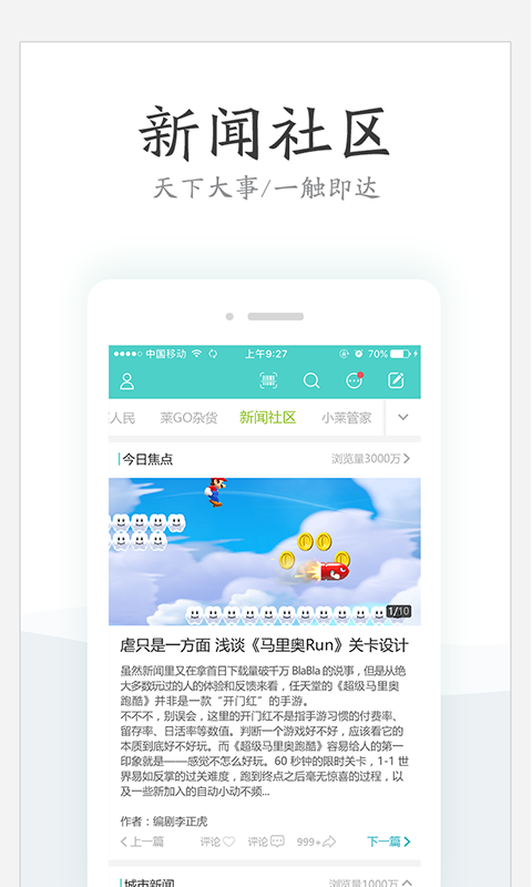 新闻社区:今日焦点、城市新闻,用最少的操作获得最有价值的信息。