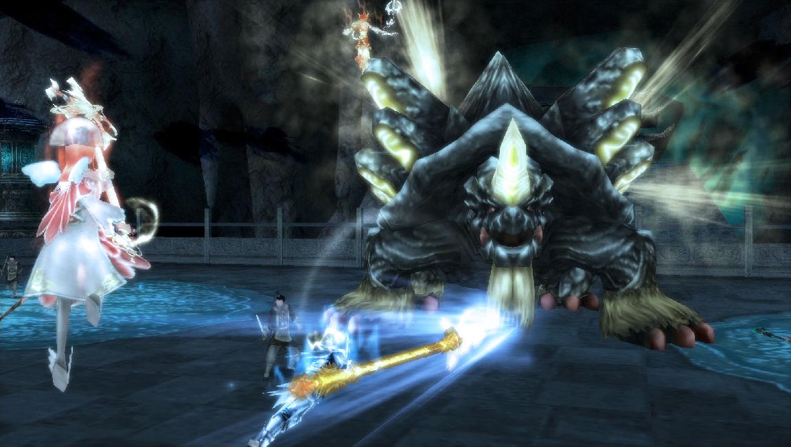 举起左手,然后往地上猛拍一下。在辟邪周围产生巨大空气波,伤害巨大。应对方法:由于抬手动作明显,所以可以先行逃避,或者跳往高处。