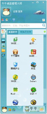 牛牛桌面管理大师是一款方便实用的桌面归类整理工具。帮您管理桌面文件,让软件、文档、快捷方式归类更加详细、桌面不再凌乱,软件界面简洁干净,支持多款皮肤。