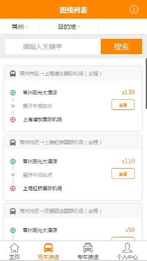 外汽接送app提供各乡镇至常州市区,以及常州至浦东、虹桥、吴淞、硕放、禄口等机场码头的专业接送服务。简洁清新的操作界面,只需一两步就能实现轻松定制及购票,为您提供便捷的体验服务
