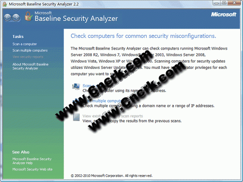 Microsoft Baseline Security Analyzer (MBSA) 是专为 IT 专业人员设计的一个简单易用的工具,可帮助中小型企业根据 Microsoft 安全建议确定其安全状态,并根据结果提供具体的修正指南。使用 MBSA 检测常见的安全性错误配置和计算机系统遗漏的安全性更新,改善您的安全性管理流程。