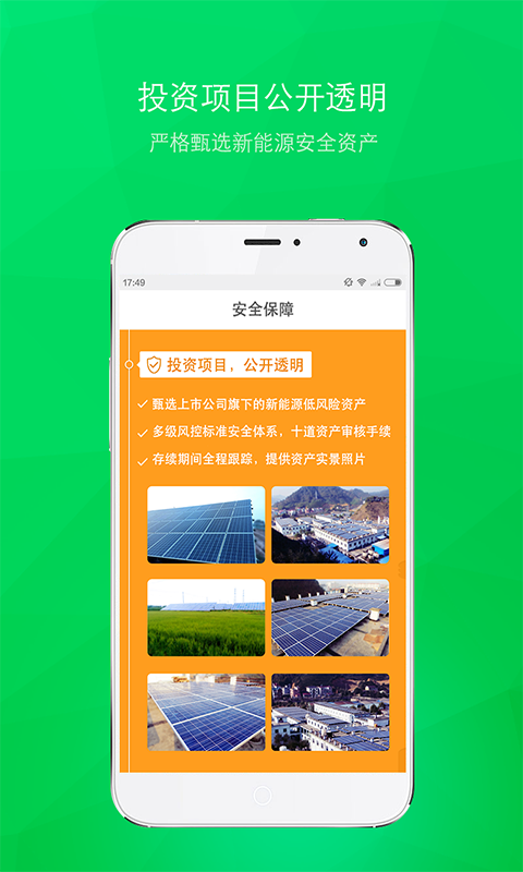 光合联萌平台上售卖的理财产品均对应于优质光伏电站资产,所以您的投资是有实体项目的投资,我们的产品完全真实、可信、安全。