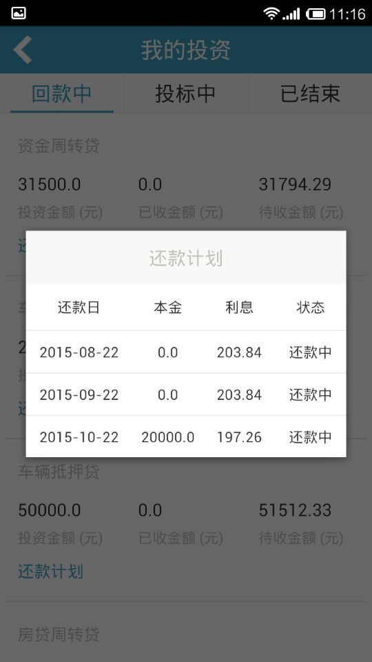 2、投资页面还款计划中加入实际还款时间字段