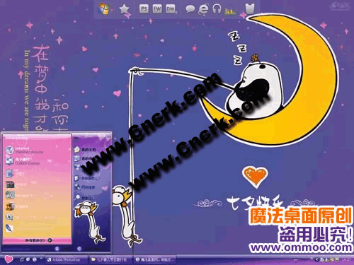 人们传说在七夕的夜晚,抬头可以看到牛郎织女的银河相会,或在瓜果架下可偷听到两人在天上相会时的脉脉情话。魔法桌面原创七夕情人节电脑桌面主题,浪漫中又带有一丝顽皮。夜深人静时刻,对着星空祈祷自己的美满姻缘吧。