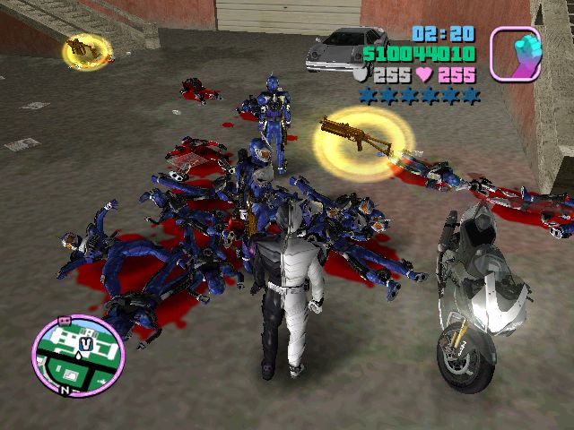 初始情况下,玩家金钱为一个亿,可以购买警察局作为存档点。拥有无敌的车辆,轮胎可以防爆,防翻,但无法和坦克相撞。
