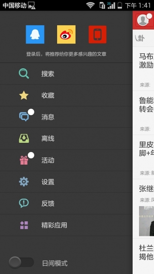 支持微博,微信,qq第三方快捷登录,精彩新闻一键分享。