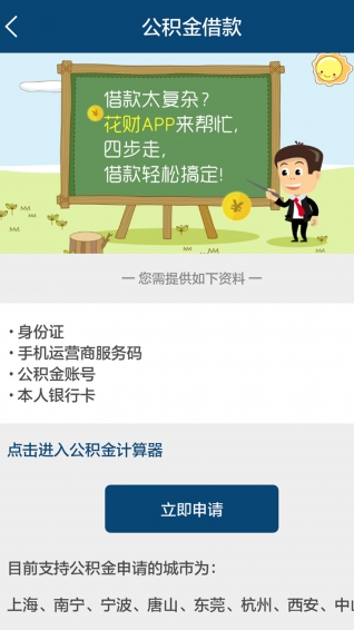 花财下载 v2.1.4 安卓版 花财app是华夏信财推出的公积金贷款软件,用户可以通过软件轻松方便地申请借贷,额度灵活快速到账,超低利率随借随还,为用户解决急需用钱的问题。