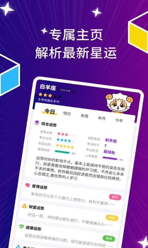 软件上设有各类星座分析与解读,还提供专属主页。