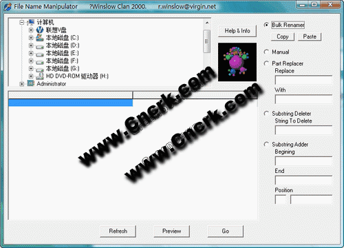 可以将你在同一文件夹的所有或是部分文件名以几种方式重新命名。可替换部分字串,或从文件名中删除扩展名,或在开头,中间,末端增加扩展名。
