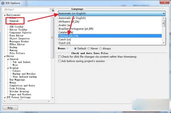 然后弹出选项菜单,点击[Environment]下的[General],选择右侧的[Language]下的[Chinese],然后点击右下方的[OK]键即可修改成功!