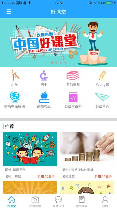 2、学习名师课堂视频:中国好课堂斥巨资邀请一线名师录播名师课堂,将高考涉及到的所有知识点都概括在内,课堂上学不会的在这里都可以补回来!