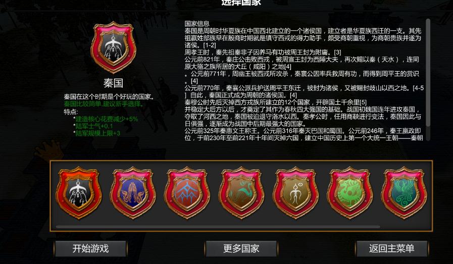 游戏背景设置在公元700年前的中国大陆上,此时强大的西周王朝因为家族矛盾,内部人员勾结犬戎最终被犬戎所灭,在秦王的保护下周平王被迫迁都。随着强大的周天子沦为花瓶以后,各大诸侯国纷纷登上历史舞台。目前的游戏属于开放式玩法,玩家可以选择地图上的任意国家来开始游戏。【游戏玩法】