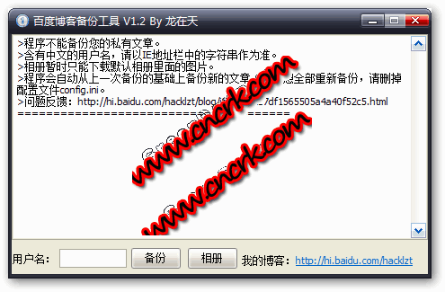 对百度博客里面的文章、相册进行一键备份。 备份速度快,操作简单
