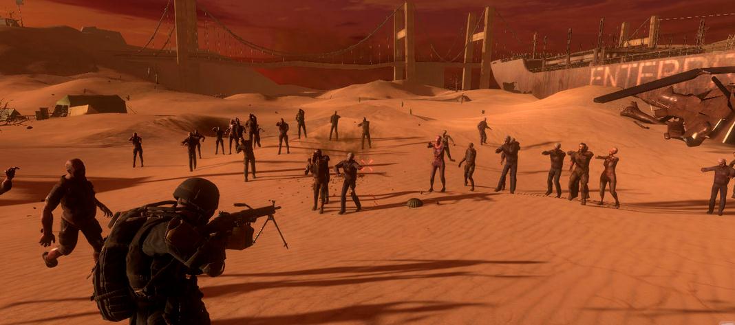 《深红色的大地(Crimson Earth)》是Real Dynamics制作的一款具备暴力元素的第三人称射击游戏。游戏里的世界是一个黑暗系的世界,街头上密布着恐怖的僵尸,他们都在寻找新鲜的肉,玩家可以有多种方式来消灭他们,但是每一种都基于暴力元素,而且游戏还将提供给玩家8种武器类型和特殊的能力,玩家们将在多样的环境背景下完成任务,突破障碍,享受最酷爽的射击感觉!【游戏特色】