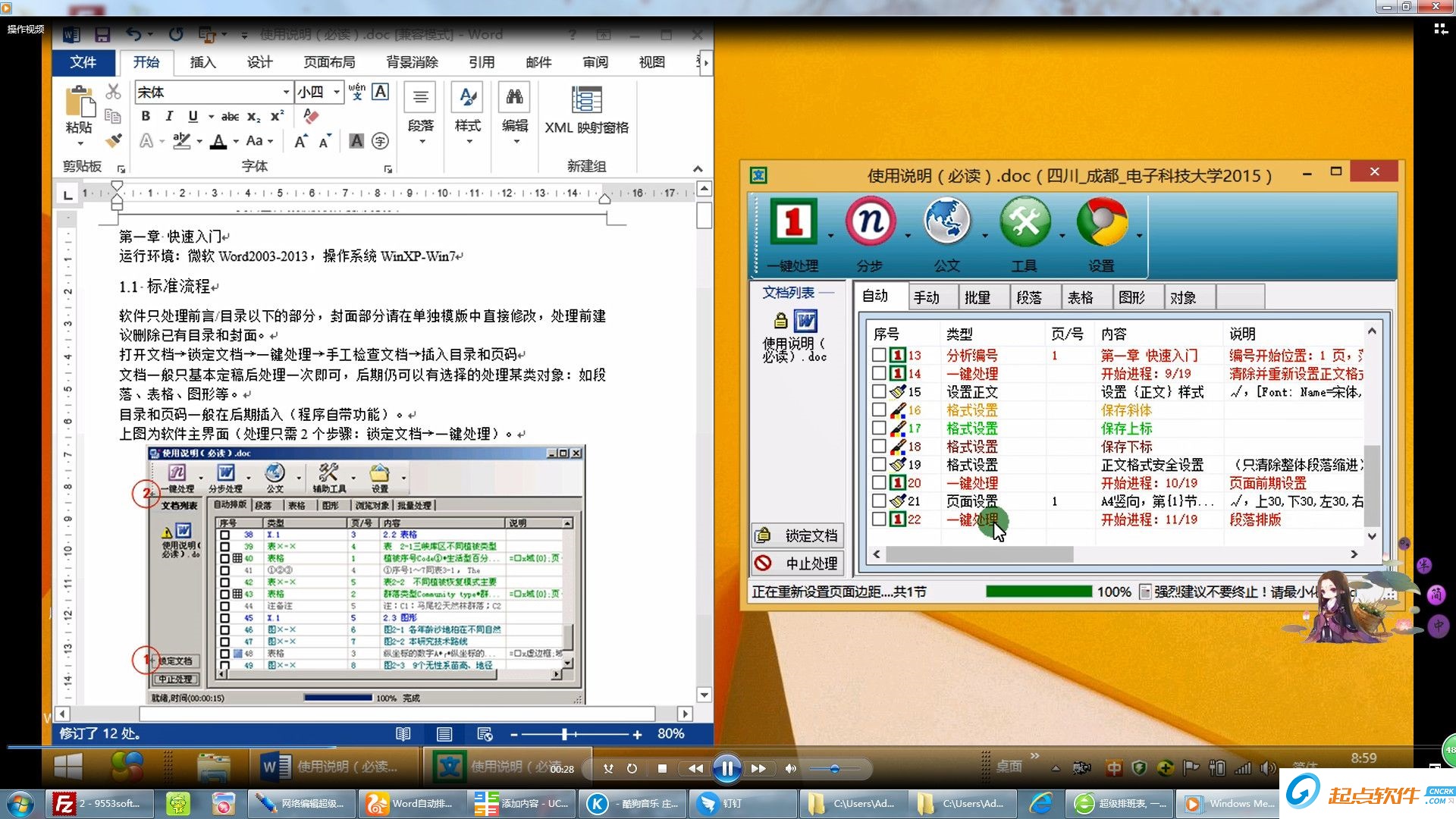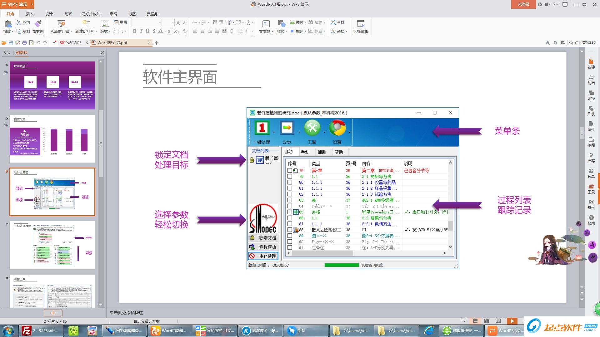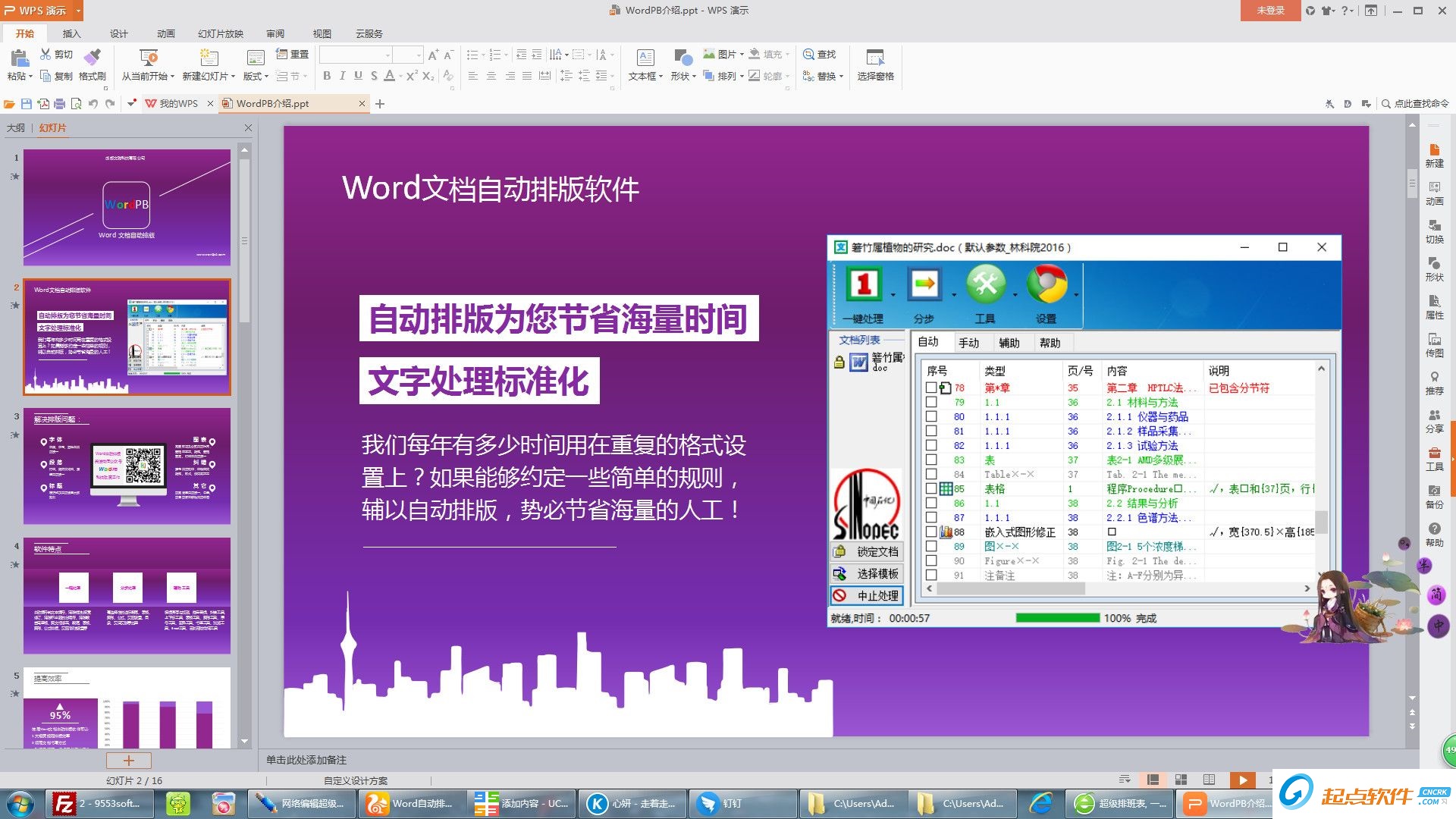 Word文档一键处理特别适合处理数百页Word标书、论文、报告、规范、公文等格式要求严格的文档...自动处理段落,表格,图形,公式,脚注,页眉,页码,域...自动生成目录(主目录、图目录、表目录)。【软件功能】