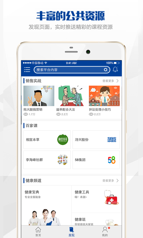 海量精品课程:铁建共享近四万门微课,覆盖职场各项技能丰富的公共资源:发现页面,实时推送精彩的课程资源