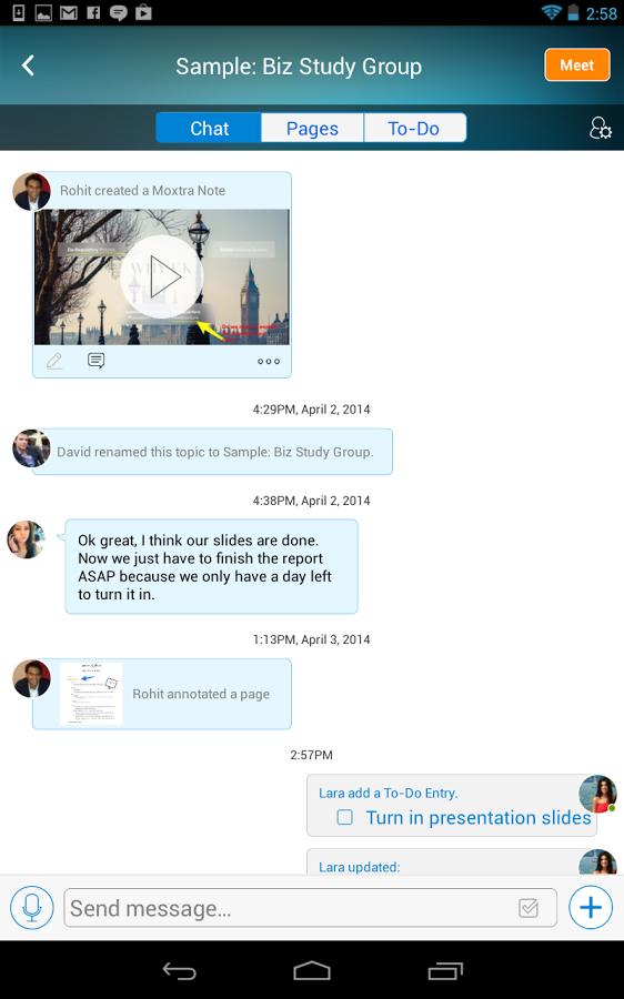 在简单易用的通讯界面之上Moxtra提供了强有力的交互工具。