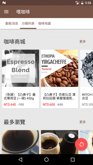 嗜咖啡中不但有许多咖啡食谱的分享,其中也有许多优质咖啡店,为自己的咖啡豆留下详实的冲煮记录,在嗜咖啡上,不但能看到怎么冲,还能在手机裡购买到这些好咖啡豆,此外,也能购买咖啡店家提供的各种咖啡相关器材。浏览方便,结帐快速,带回家照着食谱冲煮,不浪费任何一颗咖啡豆。