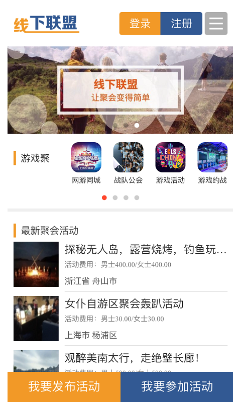 网游、聚餐、K歌、泡吧、联谊、运动、旅游......精彩等你创造,欢乐一起参与。