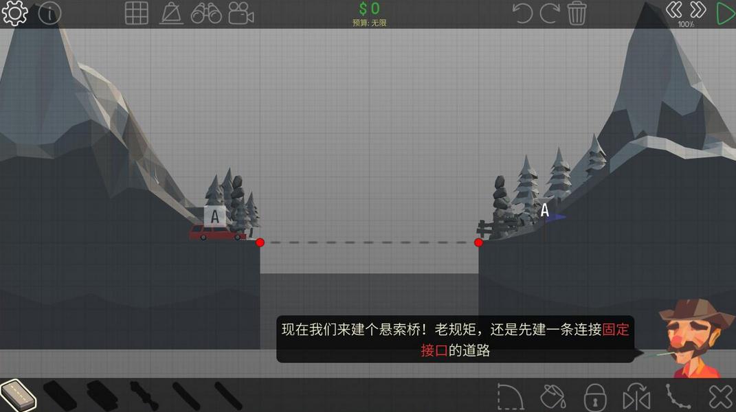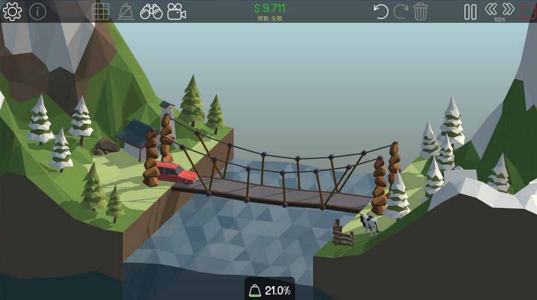 《Poly Bridge》是Dry Cactus制作发行的一款模拟经营游戏。现在,释放你的创造力,进行一场前所未有的桥梁建造吧!在以物理为基础的游戏中解决难题,并创建自己的桥梁设计难题。在《Poly Bridge》这款游戏中,你将利用不同的建筑块来建造桥梁,并在严格的物理条件下测试桥梁的负重。随着游戏的深入,玩家可运用的资源会越来越多,但同时也将面临的挑战也会越来越多。