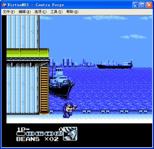 该游戏名为魂斗罗力量,在国内也有称魂斗罗3代的,吃箱子可切换子弹,有四名主角,关主体型都很大。