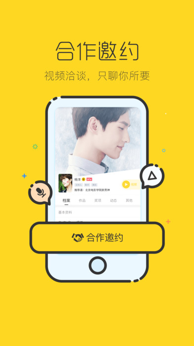汇聚全国艺人,使艺人高效、快速通过平台对接需求和资源方,同时也让更多影视机构、品牌企业快速找到艺人、约到艺人。