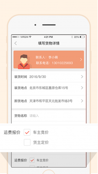 4、多种运费报价方式和结算方式,可发布货源时报价,也可以让承运人竞价。
