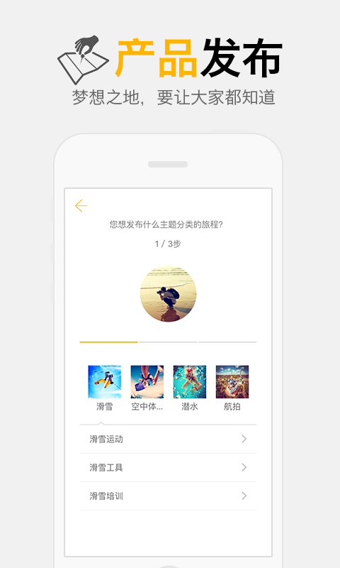 一个出生在射手座风一样的产品诞生了——SOBIG app,我们称它为地哥,地哥很(强)快(迫)乐(症)的把最好的、最具特色的目的地用一个个板块装起来,有滑雪、跳伞、潜水、游艇等各种项目;在SOBIG app的领域里,我们汇聚了一群带着兴趣和梦想的人群,我们称他们为鸽子,他们可以通过地哥找到自己最想去和最有逼格的项目及目的地;