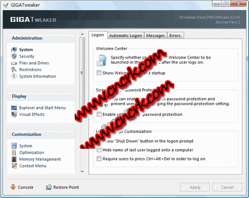 GIGATweaker功能比以前的Tweak UI更多、更完整,还可支持Windows 7与Vista等操作系统,是个相当好用的系统设置工具!
