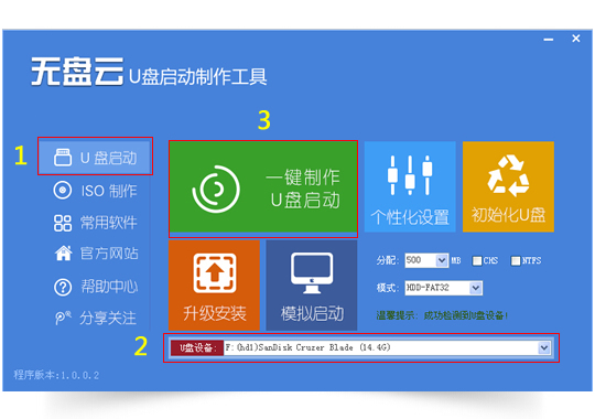 2.点击右图1所示进入“U盘启动”的制作界面。